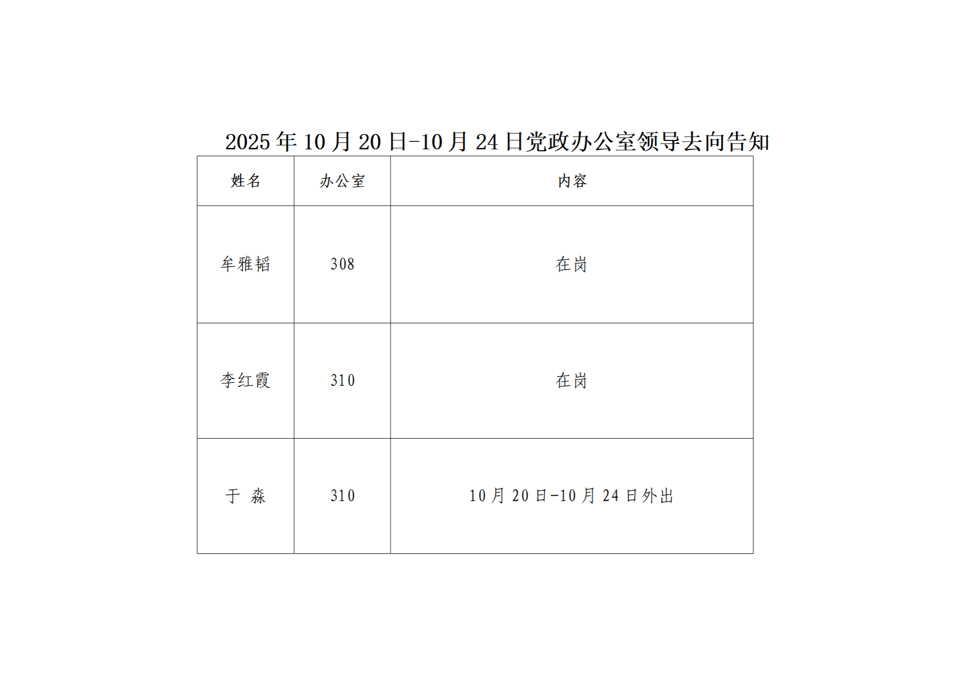 2025.10.20-2025.10.24部门领导去向告知