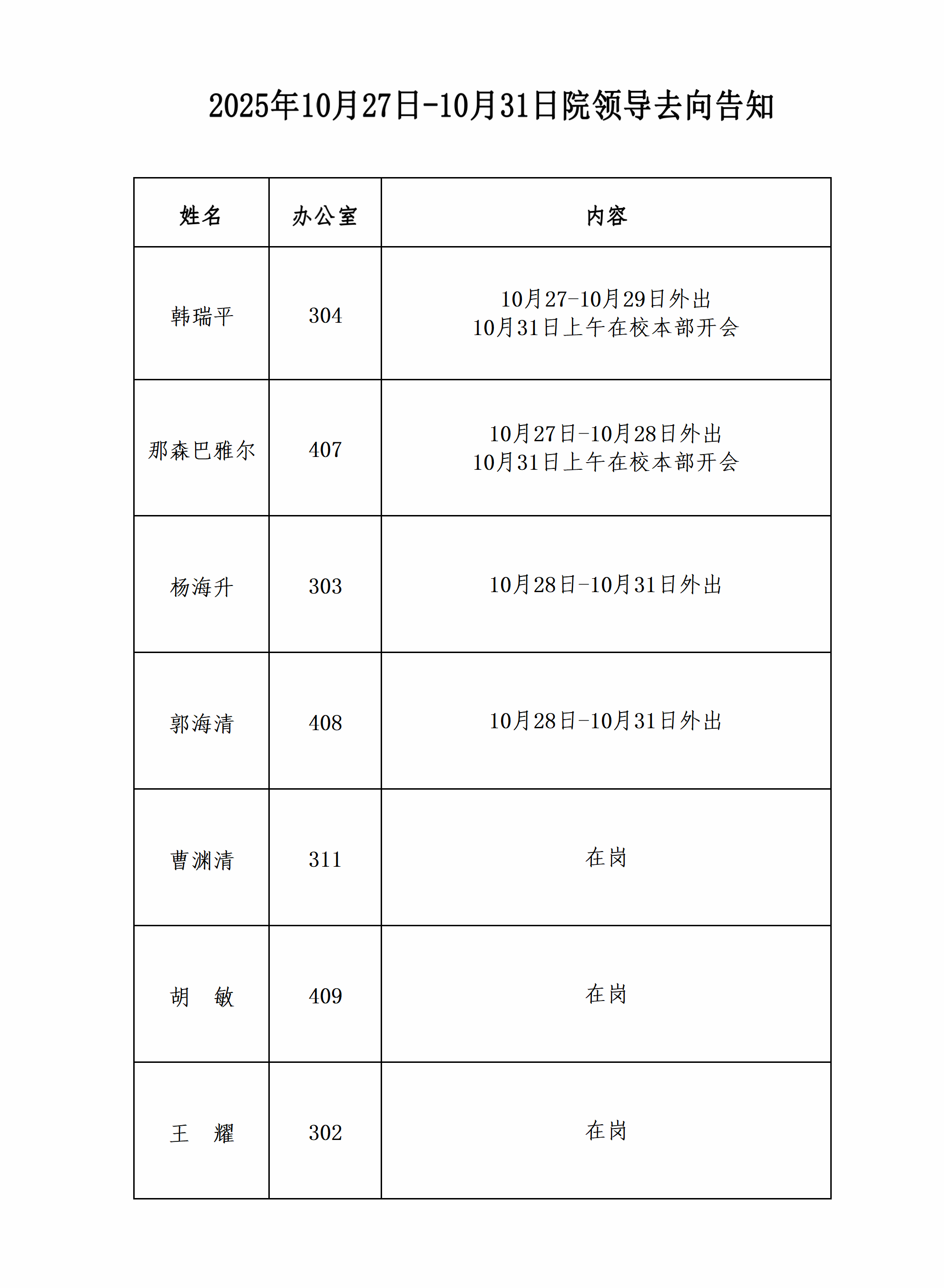 2025.10.27-2025.10.31院领导去向告知